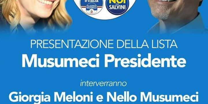 Grande entusiasmo e partecipazione, a Catania, per Giorgia Meloni e Nello Musumeci in occasione della presentazione della Lista “Nello Musumeci Presidente”.