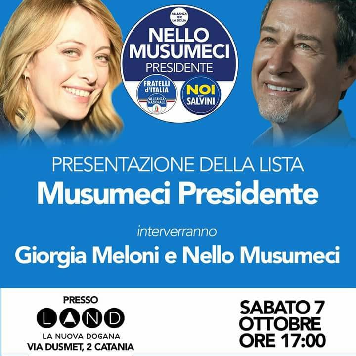 Grande entusiasmo e partecipazione, a Catania, per Giorgia Meloni e Nello Musumeci in occasione della presentazione della Lista “Nello Musumeci Presidente”. Durante la manifestazione la…